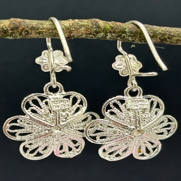 Descubre la elegancia y la delicadeza de estos exquisitos aretes de filigrana floral. Cada pieza es una obra maestra de artesanía, cuidadosamente elaborada en plata de alta calidad. El intrincado diseño floral aporta un toque de naturaleza y belleza a tu estilo, mientras que la filigrana añade un toque de sofisticación. Estos aretes son ideales para ocasiones especiales o para complementar tu look diario con un toque de elegancia floral. Lleva la primavera contigo en cualquier época del año con estos aretes únicos y cautivadores.